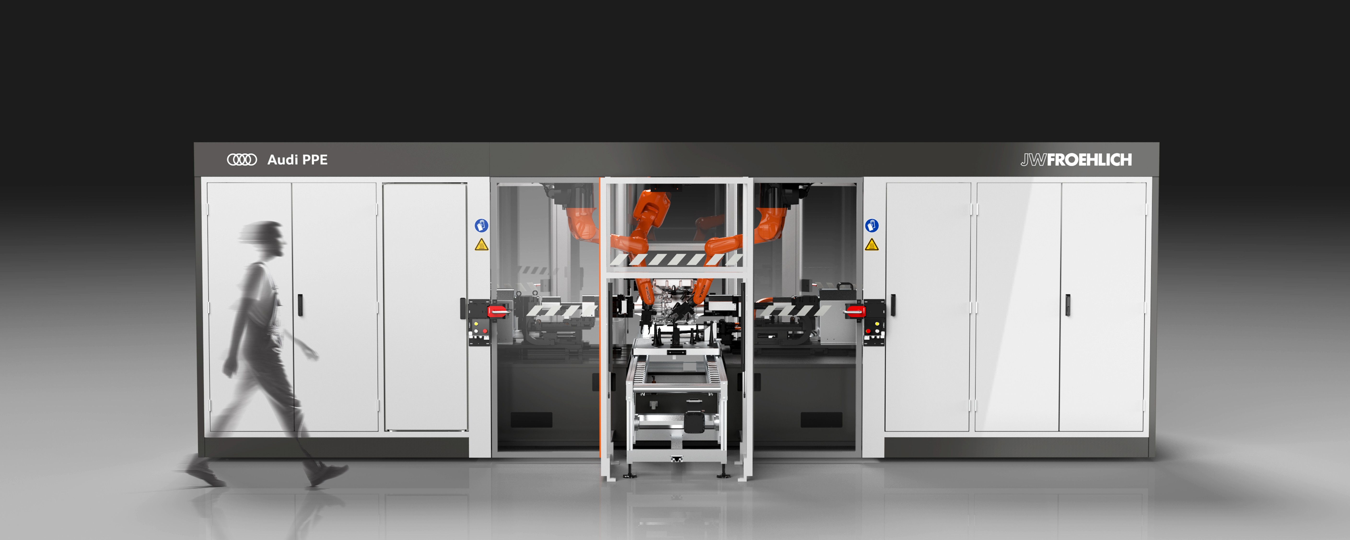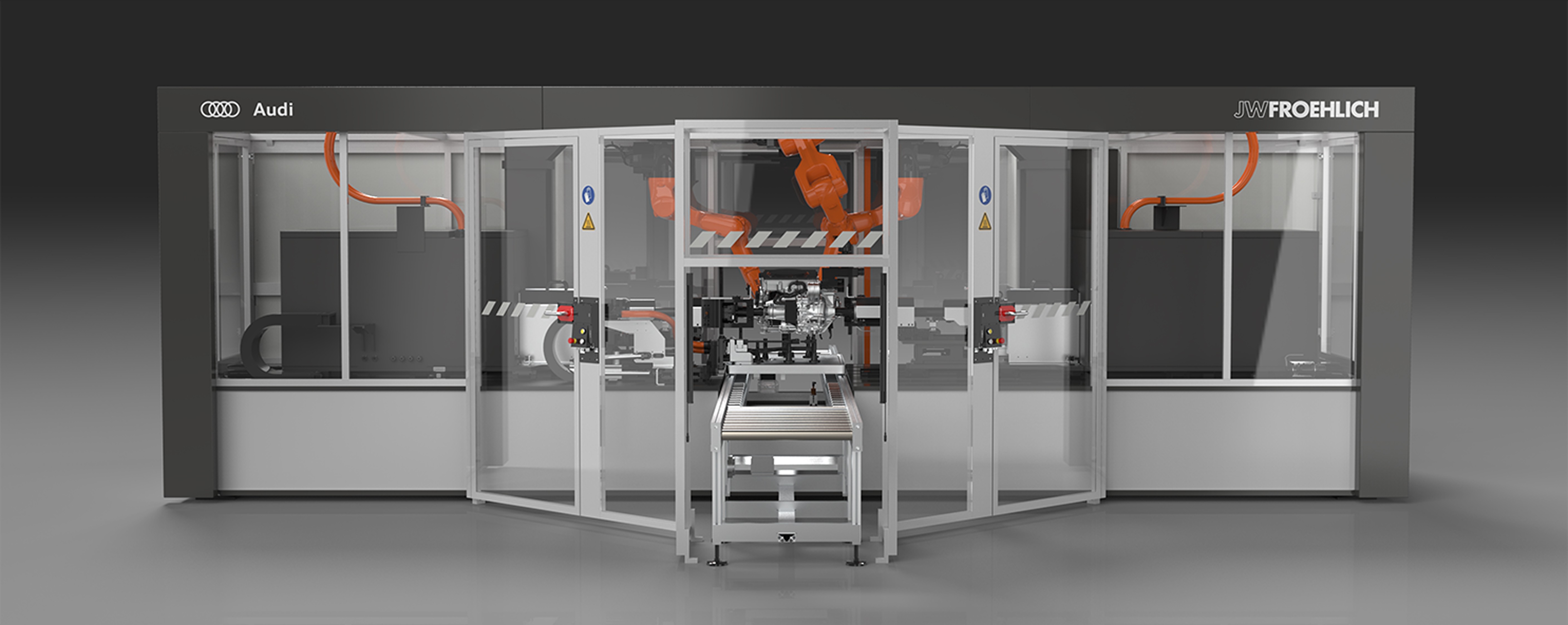 This JWFroehlich test stand sets a new benchmark in end-of-line drive unit testing. With fully integrated robotic automation, it ensures uncompromising accuracy, speed, and repeatability all housed within an uncluttered, architectural design.